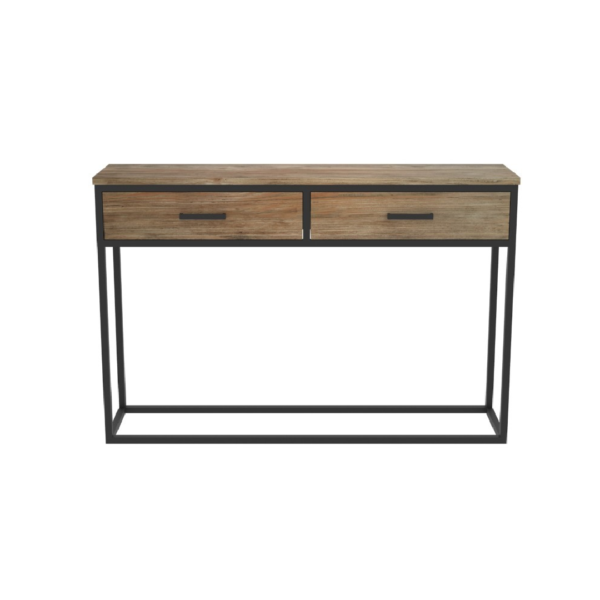 Textured Top: Features a thick, durable tabletop with a rich wood-grain finish, offering a warm and natural touch to the industrial base.