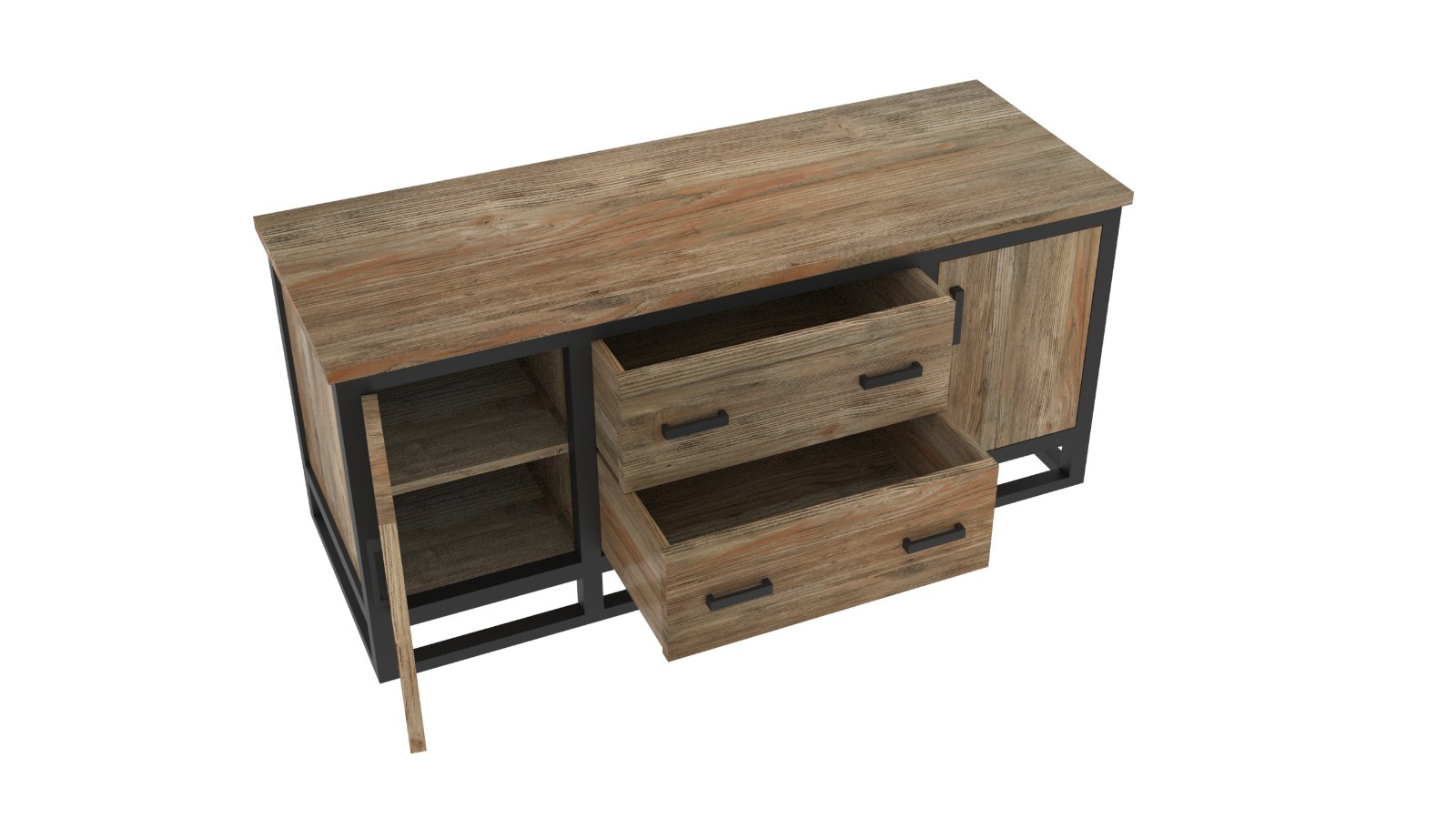 This Ironwood Brooklyn Tv Dresser features a bold industrial design, combining a sturdy metal frame with beautifully textured solid wood. The natural grain and warm tones give each piece a unique character, while the clean metal lines add strength and stability. With a practical layout of doors and drawers, it offers generous storage and a timeless look that fits perfectly in modern, industrial, or contemporary interiors.